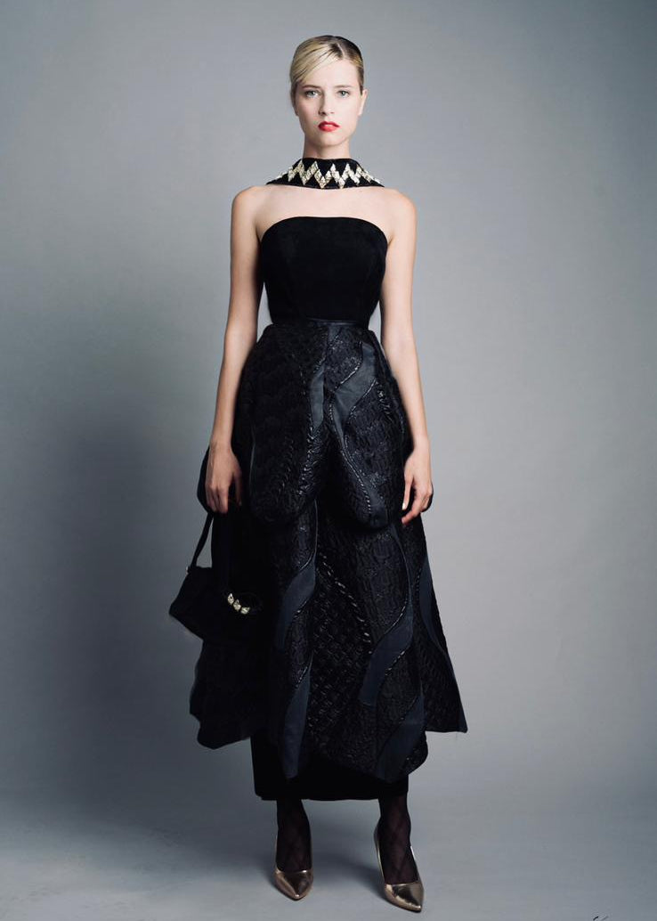 Nesta capsula, os tecidos variam de Seda, Lã, Viscosa, Merino, Elastano, Jaquard, Mikado, Fresco de Lã, Poliéster e Voile.